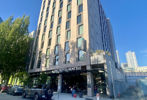 Stylish hotel at the corner of Boren and Republican Streets in South Lake Union, near e-commerce firms and Center for Wooden Boats. Rooms with 42-inch TV, USB ports, fast WiFi. Bar Moxy serves wine and local craft brews. Fitness center. Pets $150/stay. (First of Marriott's Moxy brand — more affordable, targeted to younger demographic.)