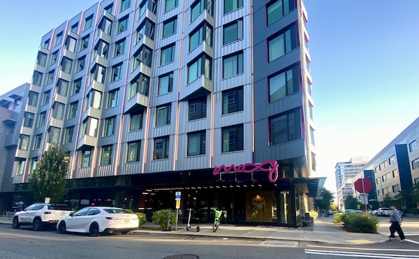 Stylish hotel at the corner of Boren and Republican Streets in South Lake Union, near e-commerce firms and Center for Wooden Boats. Rooms with 42-inch TV, USB ports, fast WiFi. Bar Moxy serves wine and local craft brews. Fitness center. Pets $150/stay. (First of Marriott's Moxy brand — more affordable, targeted to younger demographic.)